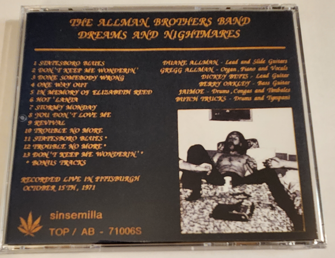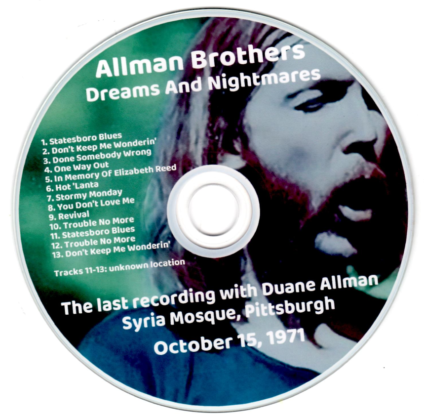Allman Brothers: Dreams And Nightmares – The last recording with Duane Allman Syria Mosque, Pittsburgh October 15, 1971 Live Concert (1CD)