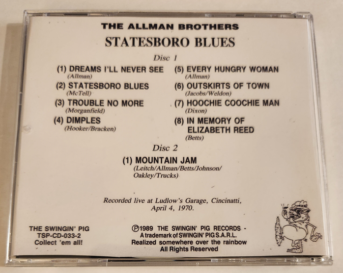 Allman Brothers: Statesboro Blues - Ludlow’s Garage, Cincinatti, OH April 4, 1970 Live Concert (2CD)