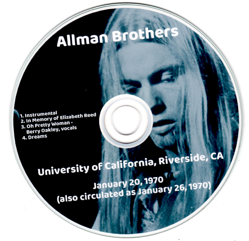 Allman Brothers: University of California, Riverside, CA January 20, 1970 Live Concert (1CD) (also circulated as January 26, 1970)