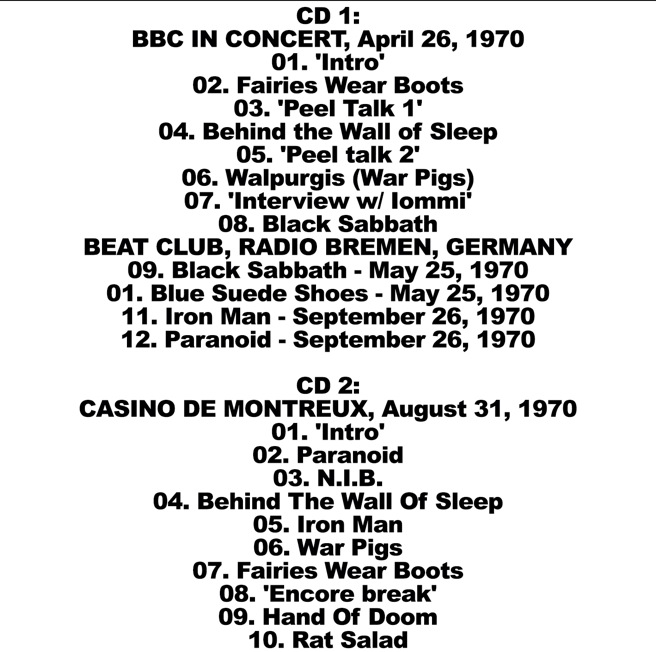 Black Sabbath: Live 1970 – A Prof. Stoned Compilation Live Concerts BBC April 26, 1970 + Beat Club May 25, Sept 26, 1970 + More (2CD)