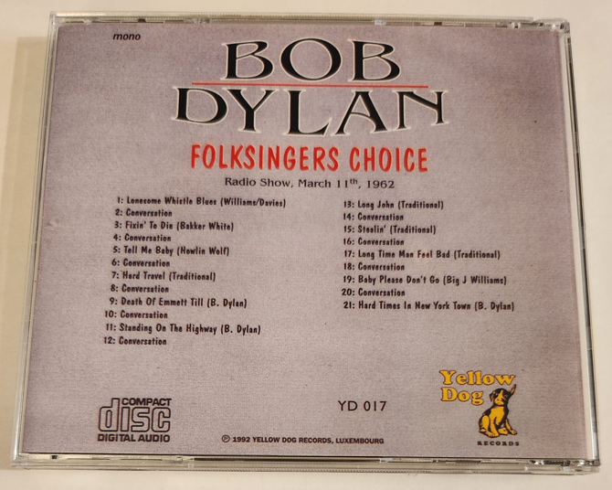 Bob Dylan: Folksingers Choice 1962 Cynthia Gooding’s Folksingers Choice, WBAI Radio, New York, recorded on January 13, 1962 Live Concert (1CD)