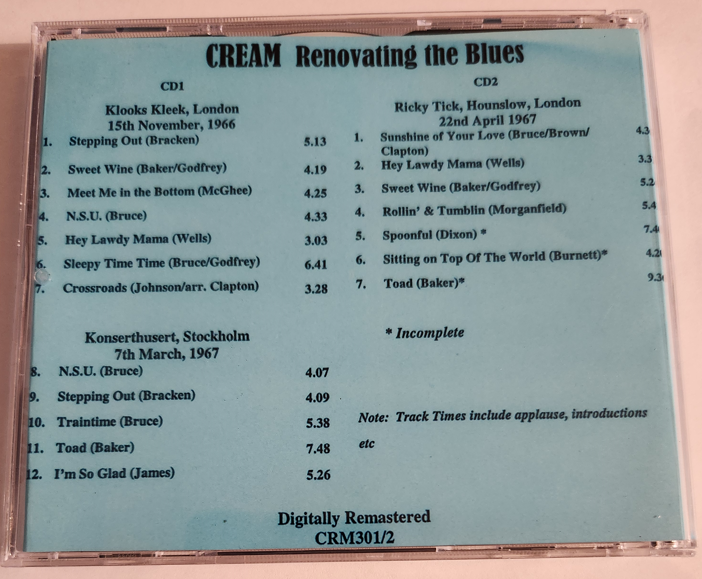 Cream: Renovating The Blues – Live Concert Compilation London Nov. 15, 1967 + Stockholm, March 7, 1967 + London, April 22, 1967 (1CD)