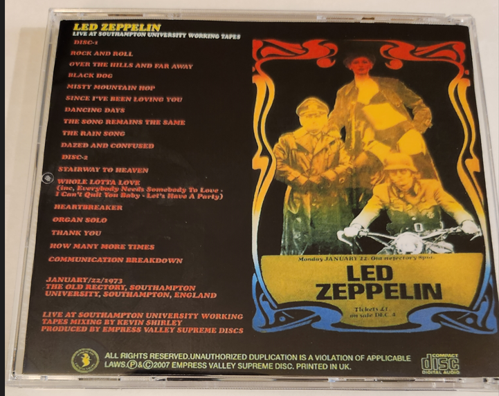 Led Zeppelin: Old Refectory, University, Southampton, England 22nd January 1973 Live Concert (2CD)