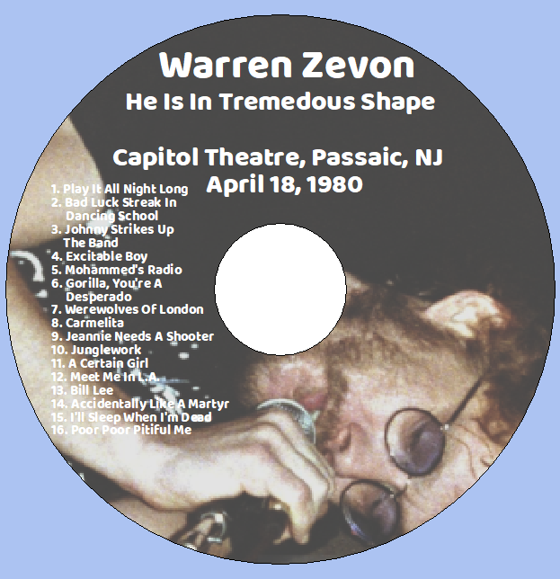 Warren Zevon: He Is In Tremendous Shape - Capitol Theatre, Passaic, NJ April 18, 1980 Live Concert (1CD)