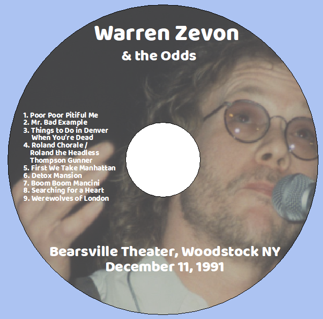 Warren Zevon & the Odds: Bearsville Theater, Woodstock NY December 11, 1991 Live Concert (1CD)