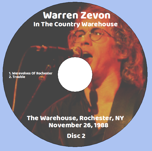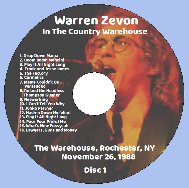 Warren Zevon & the Patrician Homeboys: In The Country Warehouse – The Warehouse, Rochester, NY November 26, 1988 Live Concert (2CD)